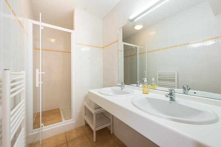 De villa beschikt zoals gezegd over 2 badkamers; één kleine bij de 2-persoonsslaapkamer op de begane grond met douche en wastafel en een grote badkamer op de eerste verdieping met douche en dubbele wastafel.