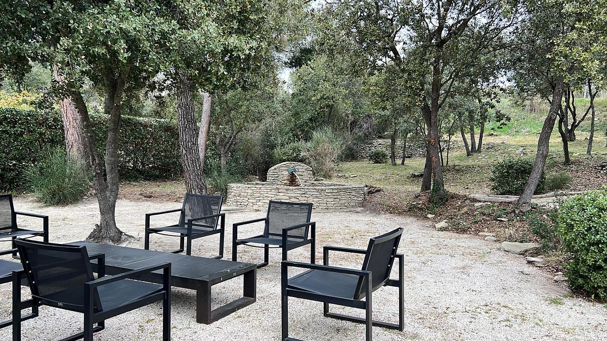 Het vakantiehuis heeft een zeer ruime en mooi aangelegde tuin met een mooi -extra groot- overdekt terras en een groot terras rondom het zwembad: beiden ingericht met luxe tuinmeubelen en loungesets en een elektrische Weber barbecue. Vanuit huis, terras en tuin heeft u een prachtig vrij uitzicht op de Petit Luberon.