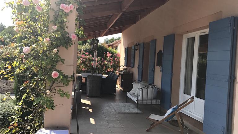 Het vakantiehuis "du Luc" heeft naast het grote verwarmde  privé zwembad waar u een verkoelende duik in kunt nemen ook een grote overdekte veranda met daarop een royale tuintafel en terrasstoelen,  zodat u desgewenst ook uit de zon kunt zitten.