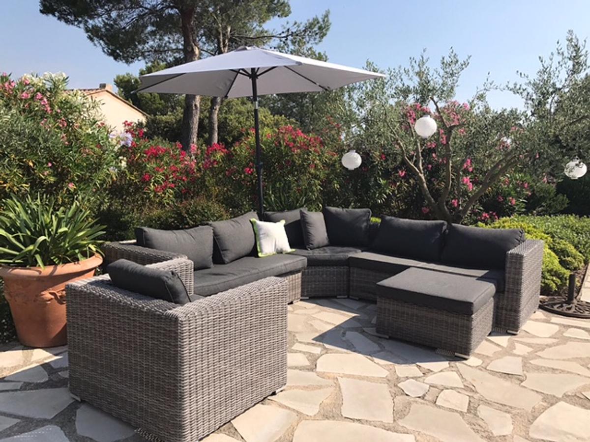 In de tuin staan diverse luxe loungesets. Er is een elektrische Weber bbq (kooltjes zijn hier vanwege brandgevaar verboden).