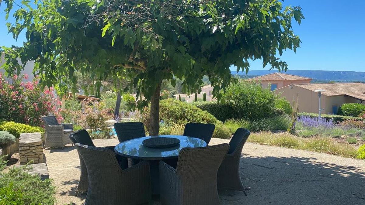 Vanuit huis, terras en tuin heeft u een prachtig uitzicht op de Petit Luberon.