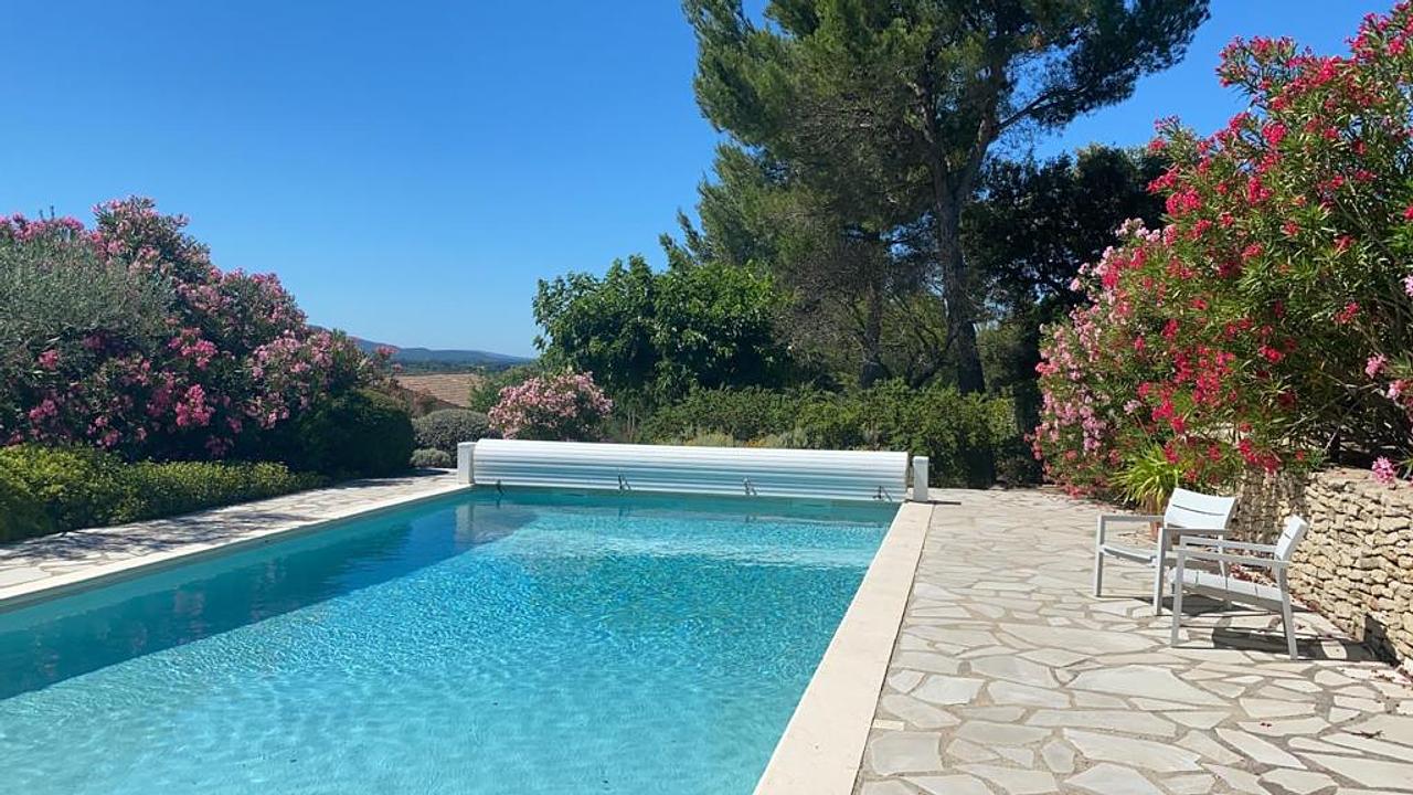 Het rustige ruim opgezette villapark heeft een fraai algemeen groot zwembad van 20x 8 meter, apart peuterbad, tennisbaan en is onder NL beheer. Deze schitterende villa is het gehele jaar beschikbaar voor verhuur. De Provence kent ruim 320 zonnige dagen per jaar. Mocht het te warm worden: de villa heeft airco op alle slaapkamers, zodat er heerlijk geslapen kan worden.Het huis is gelegen op een schitterend groot/diep stuk grond met een echt fantastisch ver en vrij uitzicht.