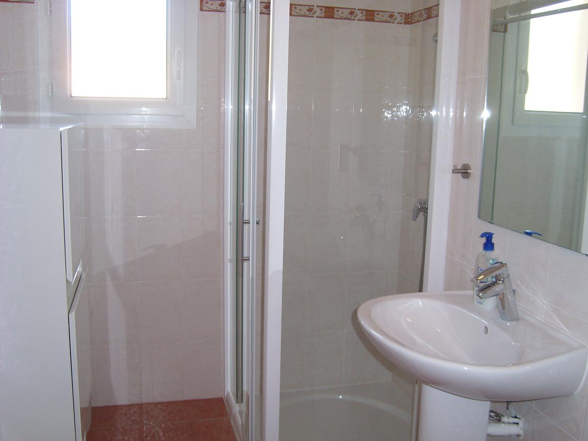 Op de verdieping is de 3e slaapkamer mét als luxe een schuifpui naar het inpandige terras met een tafel en 2 stoeltjes. Deze 3e slaapkamer heeft een verhoogd elektrisch verstelbaar Auping lits-jumeaux bed van 180 cm. met 2 spiralen en 2 uitstekende nieuwe matrassen van 90x200. Vanuit deze slaapkamer kunt u via de pui en het raam genieten van het mooie uitzicht op de bergen. Het raam is voorzien van een hor. Naast de slaapkamer ligt de 2e badkamer met douche, wastafel en toilet.
